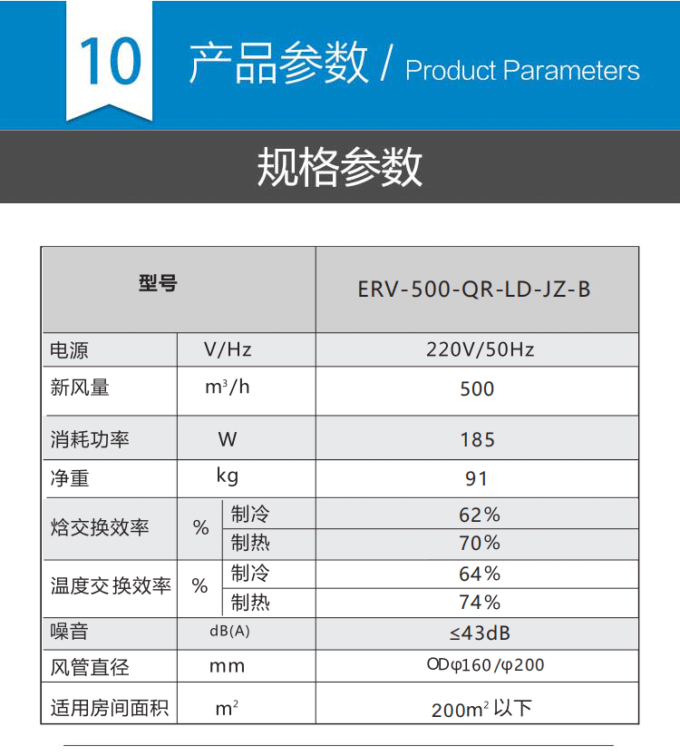 2、新風量:500m3/h,尺寸:1620*600*440mm,功率160W;