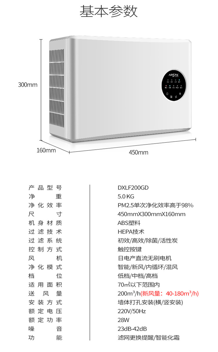 壁掛新風-艾小白簡約版DXLF200GD